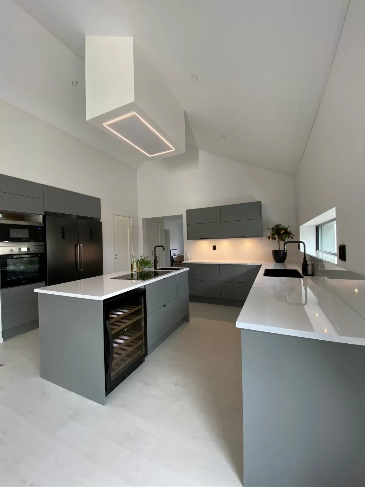 Exempel på köksfläkten PURE monterad i låda, i den nybyggda enplansvillan i Skeå. Instagram profil: @hemma.i.bodan
