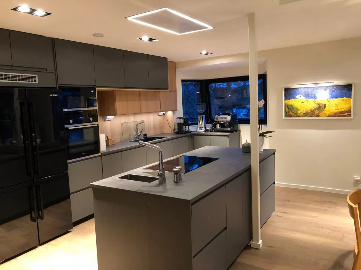 Köksfläkten monterad i det exklusiva köket hos Hossein, Enebyberg.